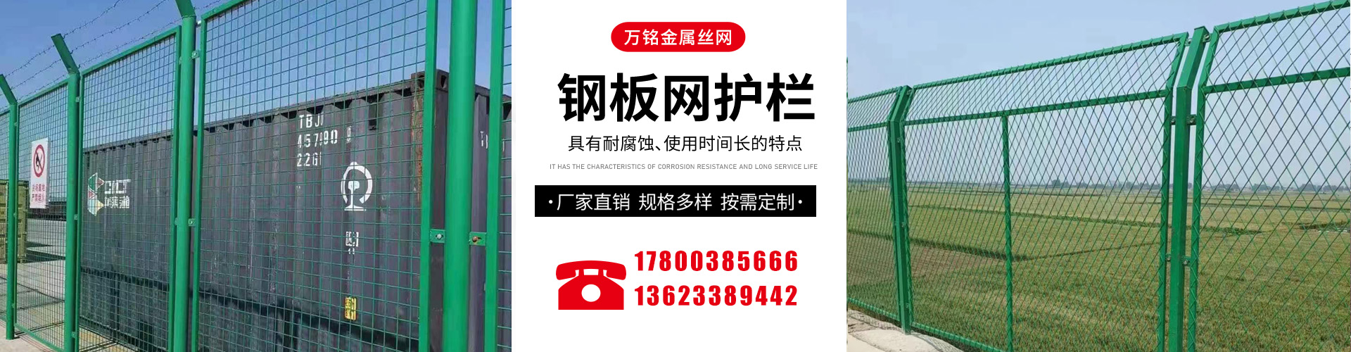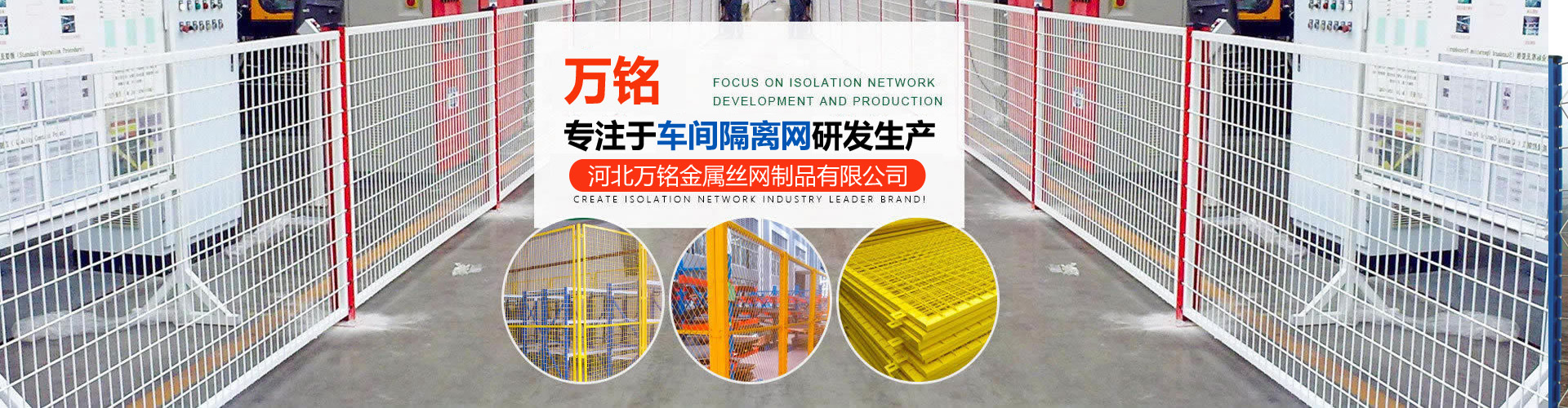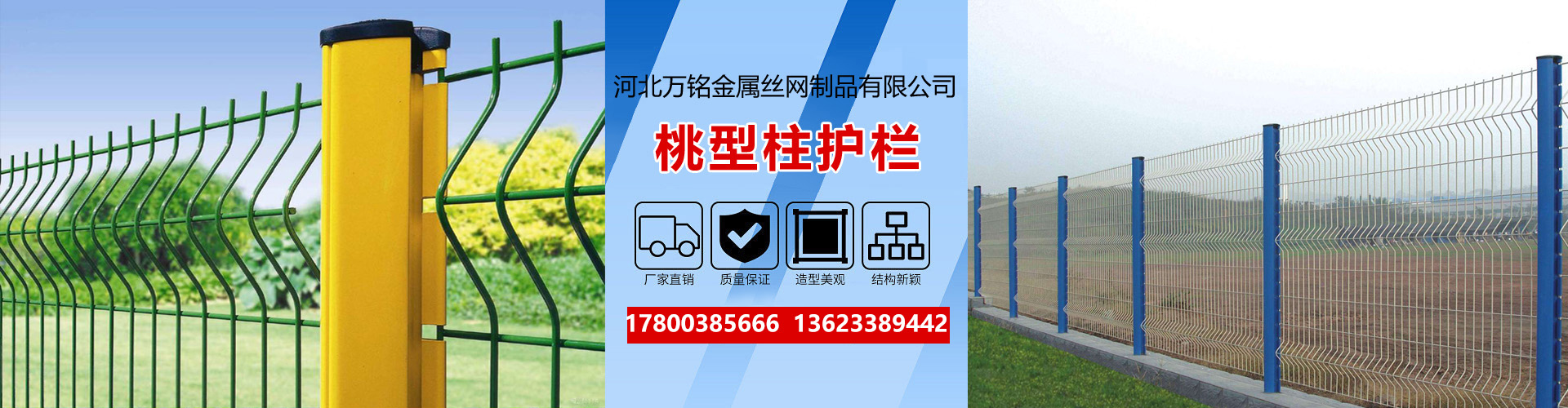 河北萬銘金屬絲網制品有限公司主要產品有:車間隔離柵、桃型柱護欄、圈地護欄網、鋼板網護欄、框架護欄、機場圍界、監獄護欄網、鐵路護欄網、體育場圍網等產品,萬銘擁有自己的工廠實體、技術設備,可自行設計和根據客戶要求生產各種型號護欄。